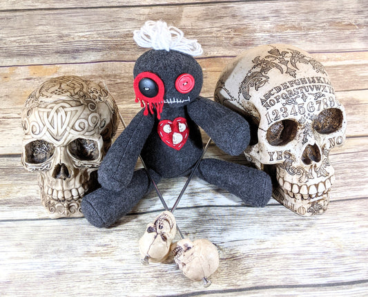 Little Black and Red Voodoo Skulls Plush Doll Creepy Cute Kawaii Stuffed Animal