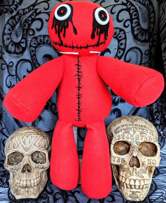 Little Gray and Red Voodoo Plush Doll Creepy Cute Kawaii Stuffed Poppet