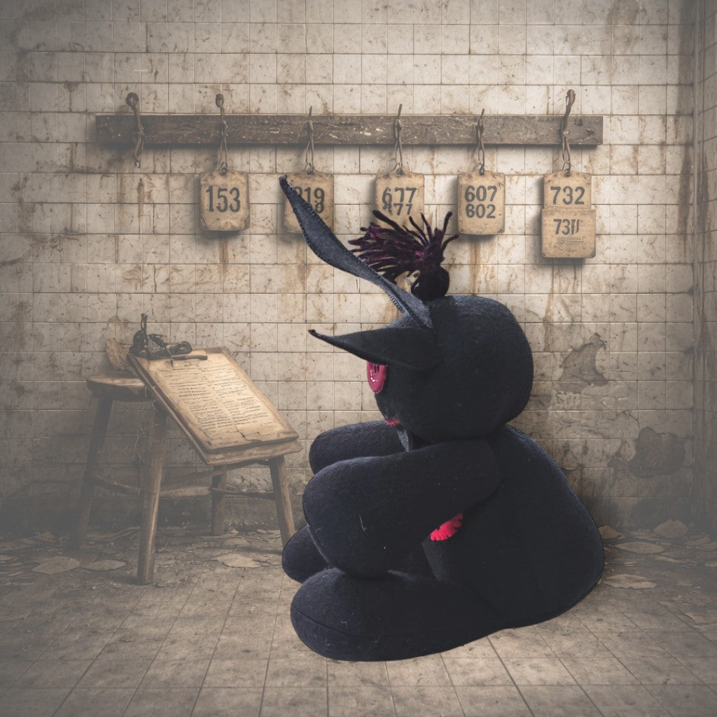 His mouth is stitched in a wide, tooth-edged grin that the day staff find charming and the night staff find less so.